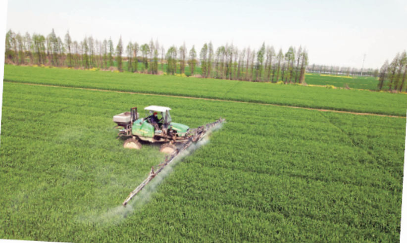 “我们坚持‘预防为主、主动出击、综合防治’十二字方针,根据天气预报,协调本部现有的植保机和无人机,集中力量打‘大会战’,在下一场雨到来之前完成第一轮防治。”4月9日,第二生产区主任潘晓忠操控无人机在田间穿梭,白色的药剂喷雾均匀洒落在植株容易发病的部位。马路另外一侧的麦田里,植保机伸出长臂,缓慢前进,均匀喷洒药水(见图)。田间地头春光明媚、活力四射,人与农机、农机与农机高效协同的画面,构成四月最美的景色。当下,正是赤霉病防治的重要节点,农场各生产区坚持勤踏田、多查苗、常监测,把准防治适期。针对连续阴雨天气、气温高低起伏不定和抽穗到扬花期时间间隔不一等情况,农业中心给出了灵活机动的“适时适量”防治措施。“第1次防治时间提前到刚齐穗时或‘见花就打’,第2次防治时间也相应提前,根据田间情况,如有必要可增加一次,进行第三次防治。”刘益勇介绍,各生产区在配药时,严格对品种、用量进行核对和计算,配制药液时采取二次稀释,确保精确定量,当遇到极端连阴雨天气,发挥主观能动性与时间赛跑,抢抓雨隙进行及时防治,切实做到抓早治小,不给病虫害留下可乘之机。