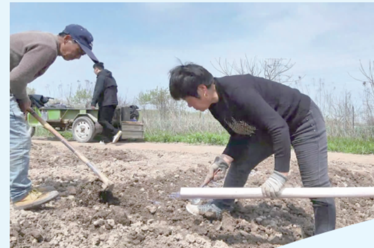 在解决模具与定向槽不贴合问题的同时,范洪江师傅还尝试改变了种植顺序,以免山药苗在模具内滑动。他采用先盖土把模具压实在定向槽内,然后再放苗的顺序种植。这就要用上弧形铲了。