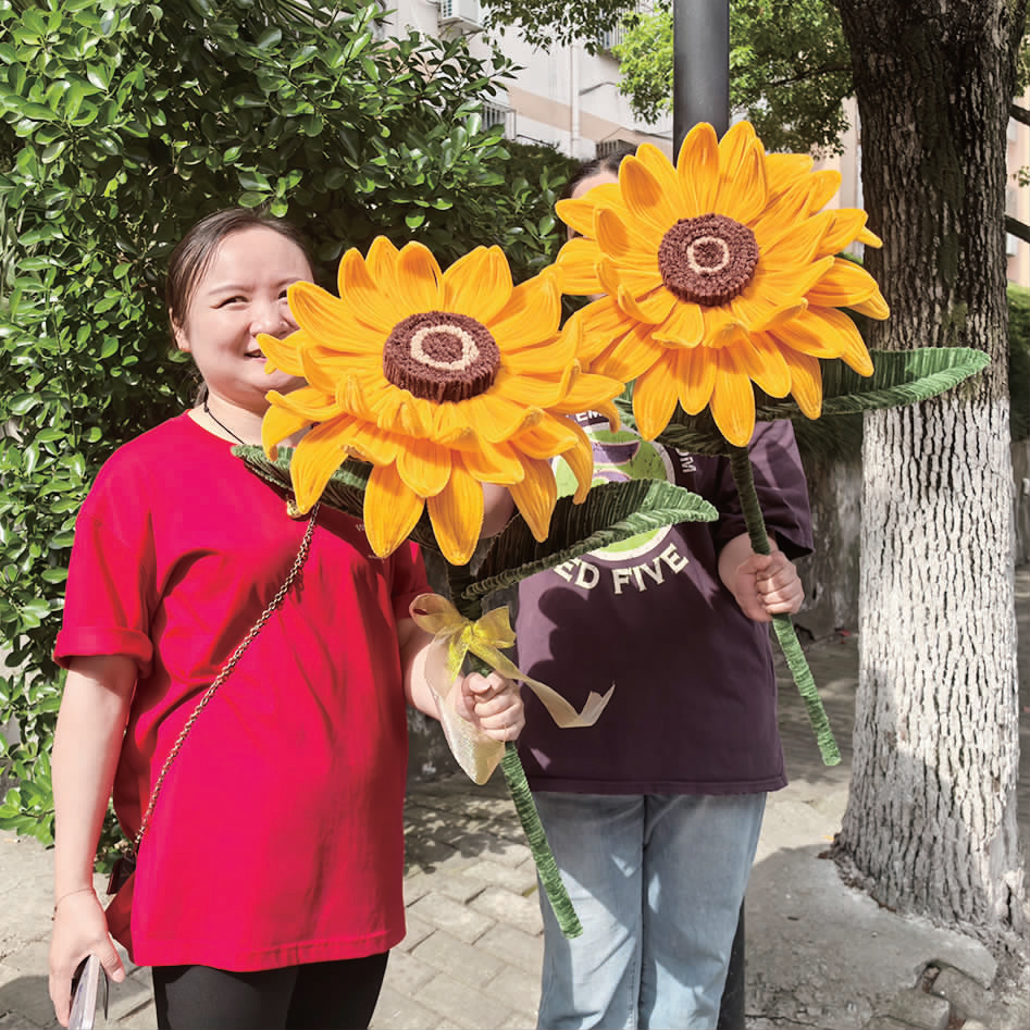 粽子、向日葵、祈福挂件……各种吉祥寓意的物品饱含着家长们的祝福。在海门实验中学考点,一株两米多高的“野生”向日葵成为考点外的别样风景。三个月前,考生家长李先生算好时间回到老家,亲自为女儿在田里播种,当天一早又回老家摘下花朵带来。“这枝向日葵刚好长了一百天,祝愿我的女儿一举夺魁。”李先生说。在海门中学考点门口,考生家长陆英举着亲手制作的扭扭棒向日葵,默默为孩子加油。“说实在话,我们做家长的比孩子都紧张,我昨晚都没睡好。不过孩子状态不错,我相信他一定可以梦想成真。”陆英说。