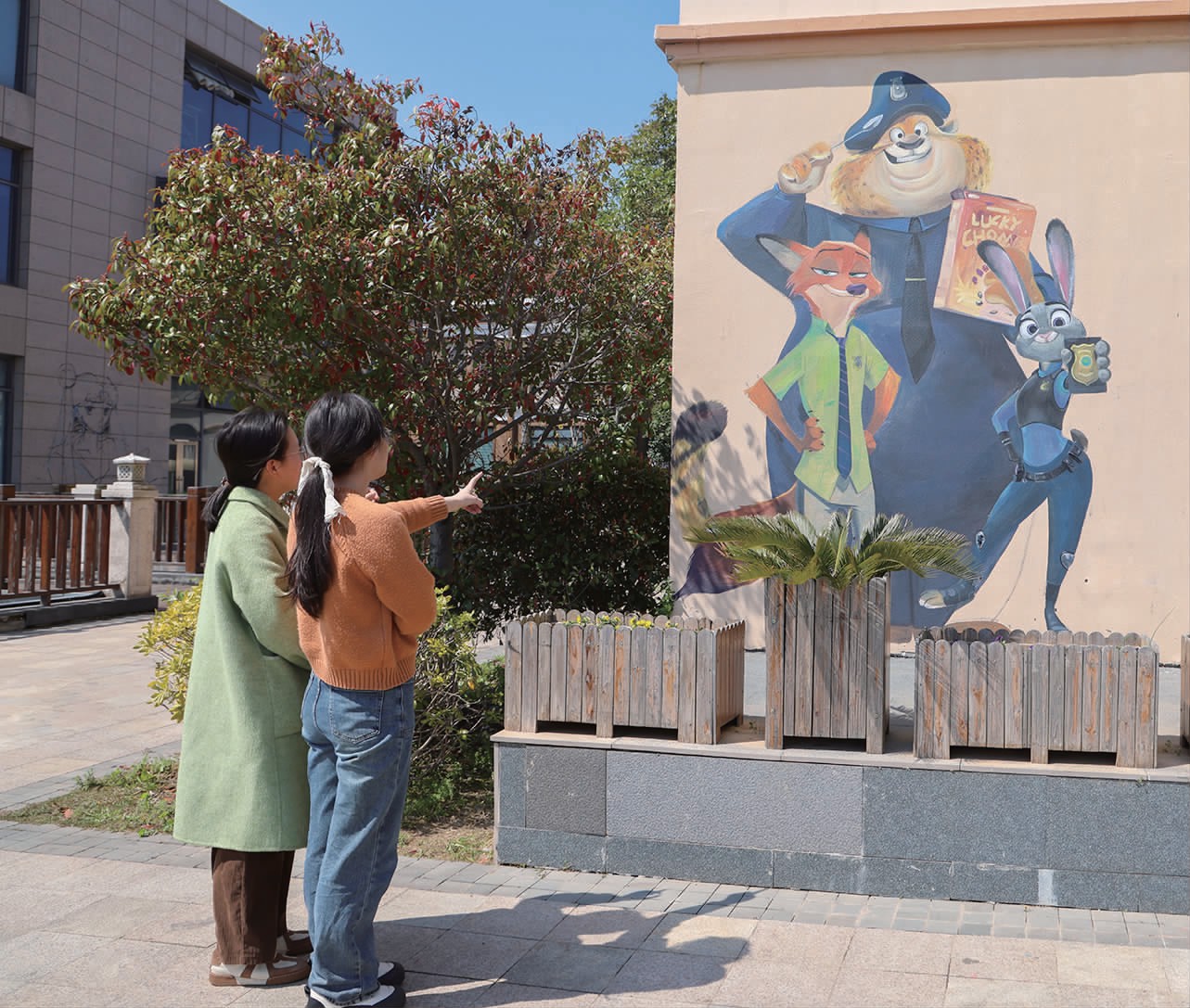 前日,在临江新区的东布洲科学城,一场艺术与城市的奇妙融合正在悄然上演。驻地艺术家马宁,正站在2米高的画台上,专注地勾勒着一幅巨型墙绘。画中的哪吒脚踏风火轮迎风而立,衣袂在风中飞扬。漫步街巷,还可以看到墙壁上画有国内外各种动漫IP,生动逼真,呼之欲出。目前,东布洲科学城内已有约15幅墙绘作品,一个转角、一次转身,就能偶遇一个个“惊喜”。