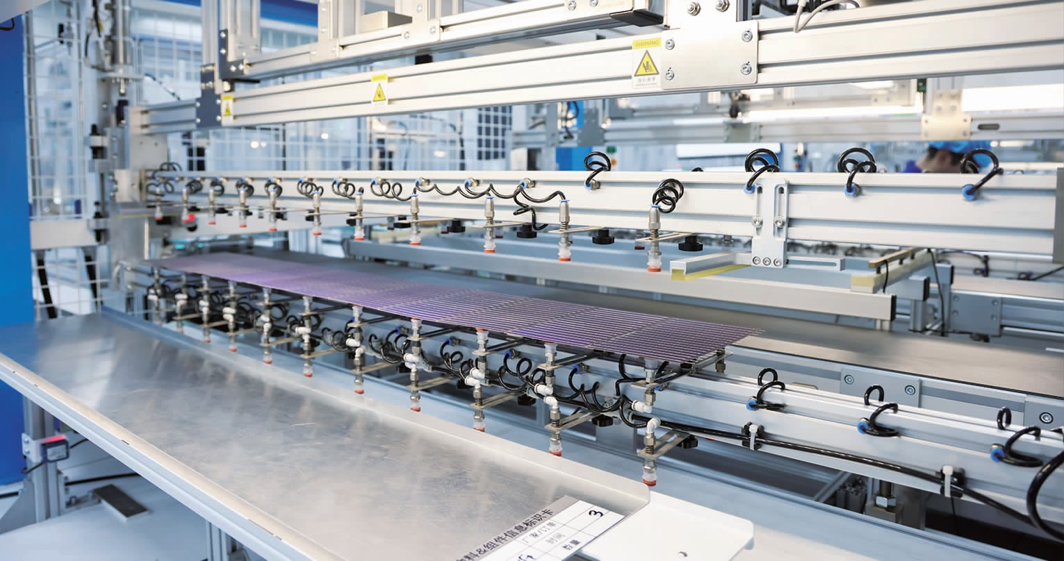 上海电气集团恒羲光伏科技(南通)有限公司通过数字化技术赋能产线,升级后的组件智造车间产量屡破新高。全自动高效组件生产线通过ERP系统、MES系统实时监控平台的上线,优化物料配送路径,减少停机待料时间,将组件智造产线瓶颈工序节拍缩短8.3%,单班有效产出提升8.7%。目前,一线单日满产量高于行业平均水平近两成。图为日前该公司智能生产线上一景。