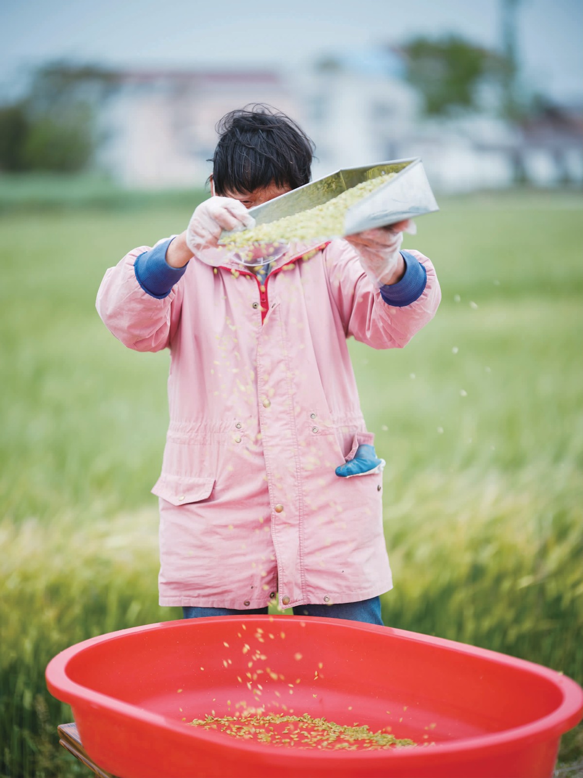冷蒸,海门很多人也称“麦蚕”。作为民间颇具特色的传统美食,每年4月底5月初,它总能以独特的香气勾起人们的味蕾记忆。在三其村,制作冷蒸的青麦仁采摘时间十分讲究。太早采摘,麦粒还只是青涩的浆汁;采摘过晚,又会失去那份鲜嫩清甜。“这不到20天的采摘期,就像一场与时间的赛跑。” 三其村党总支副书记邵林磊感慨道。