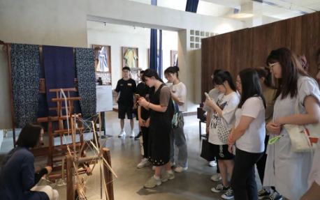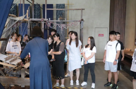 本站重点赴大生织造青年学习社体验学习。在学习社内学员们共同感受弹棉花、色织土布、蓝印花布等多种活态演绎的场景,亲身体会当年时局下张謇先生创业之艰难,感受张謇先生实业兴国的可贵初心与伟大实践。